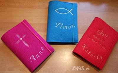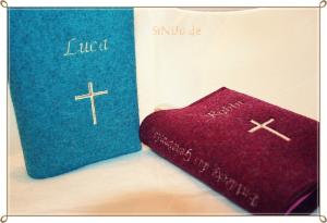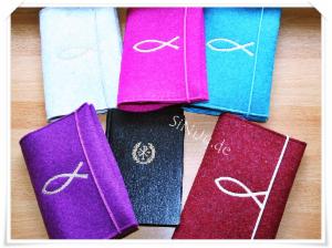 Allzeit beliebt sind individuell hergestellte Gotteslobhüllen aus hochwertigem Wollfilz in vielen Varianten Mit Fisch, Kreuz, Namen, Kommunions-, Geburts-, Taufdaten, Kordel und vielem mehr NEU : immer mit Gummiband - welches aber nur von hinten zu sehen ist, da es vorne die schönen Stickereien teilweise verdecken würde |